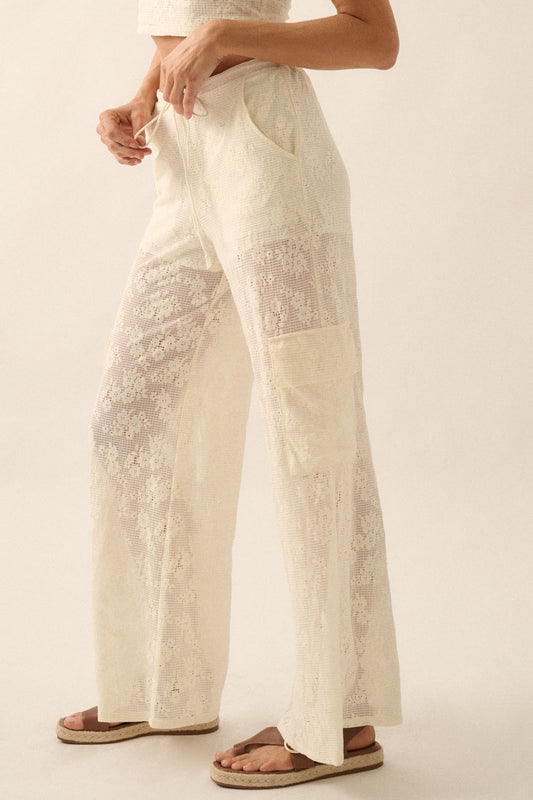 Floral Lace Drawstring Cargo Pants