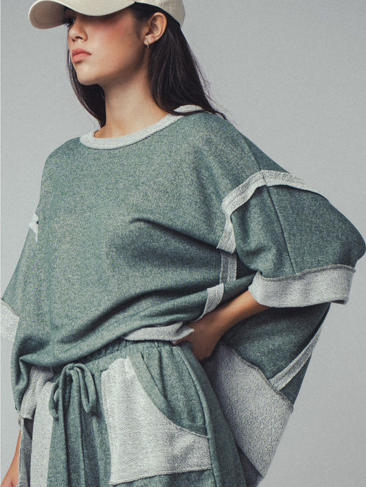 Garner Cozy Reverse Stitch Ribbed Sleeve Sweater