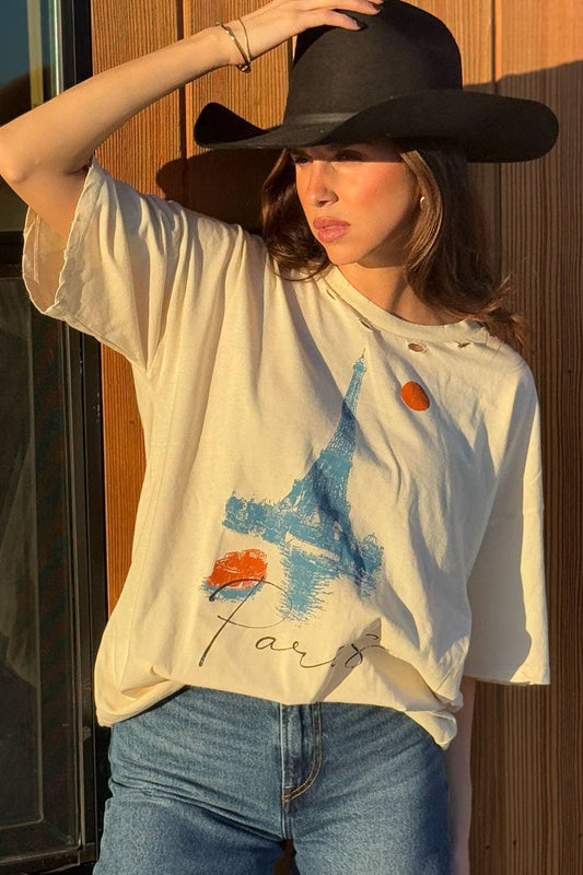 Eiffel Tower Oversized Vintage-Wash Graphic Tee