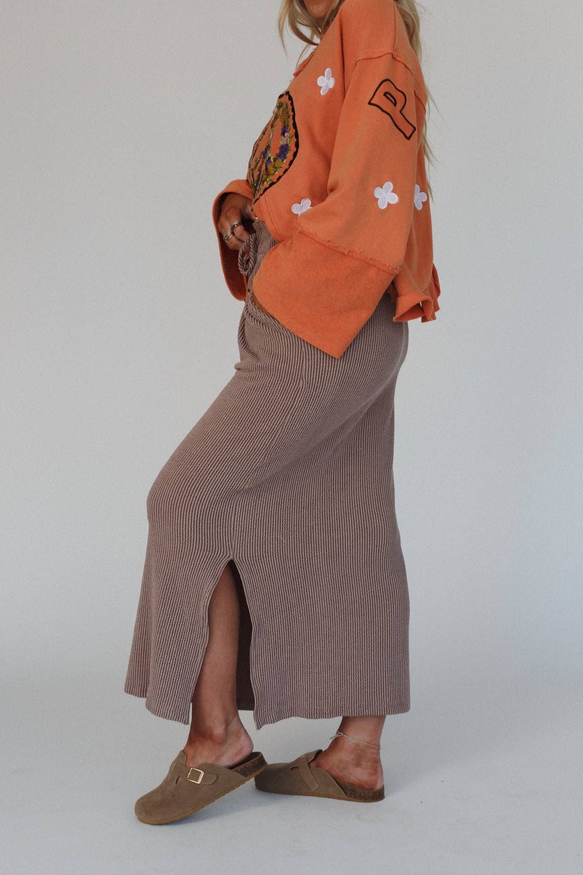 Experience the ultimate boho bottom with our Desert Rose Maxi Skirt. This effortless maxi skirt is perfect for your comfortable, cozy, and on-the-go needs. Featuring a high-rise elastic drawstring waistband with bead details and ruffle trim, as well as convenient side pockets and double side slits for added comfort, this skirt combines style and function flawlessly. Made from comfortable, ribbed fabric, it's the go-to choice for any occasion.