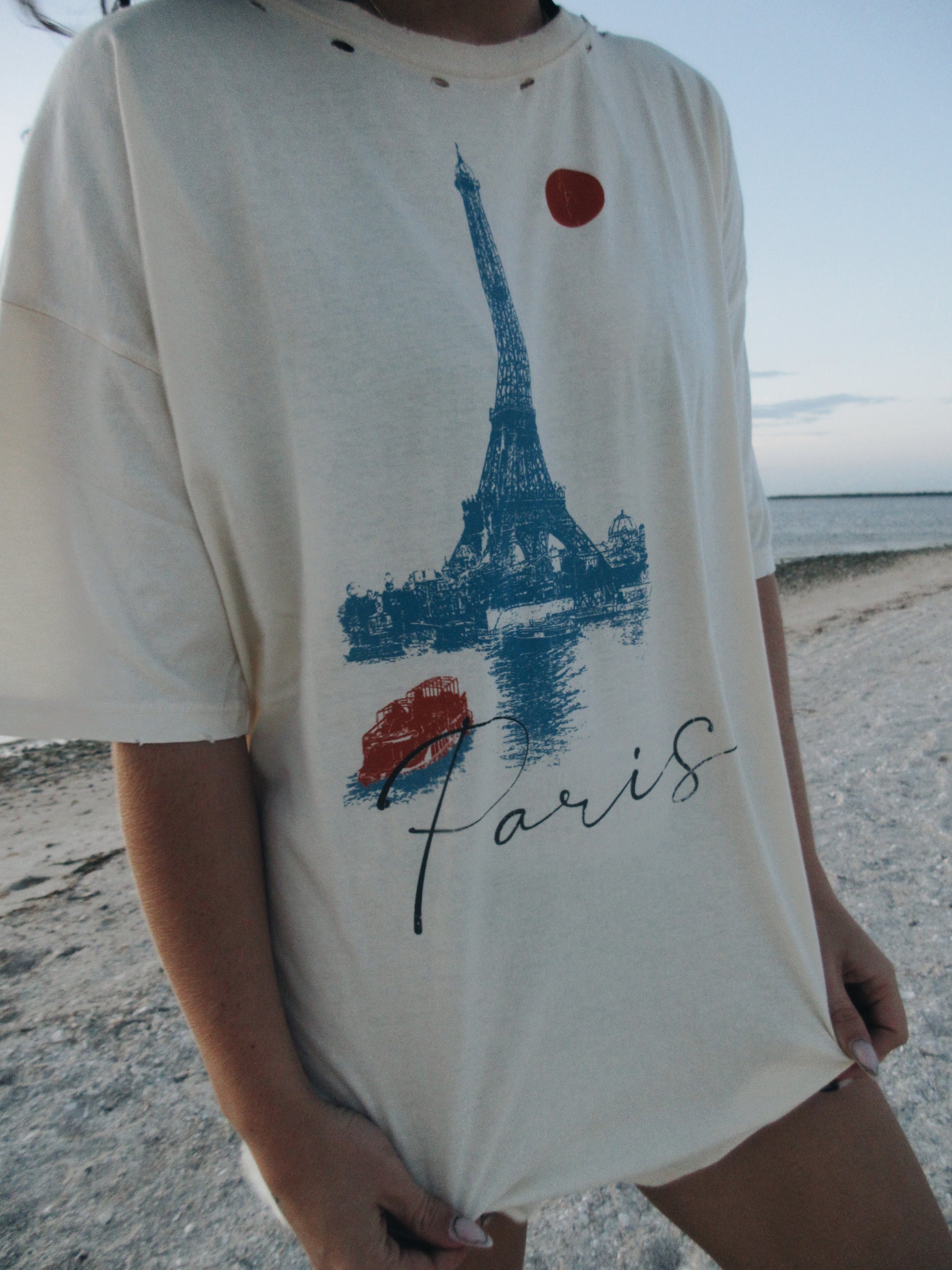 Eiffel Tower Oversized Vintage-Wash Graphic Tee